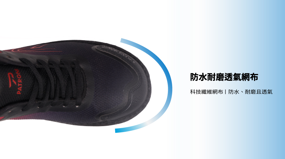 IP 大底,輕量、耐磨有效避免水解狀況。底紋設計通過 CE LG 爬梯測試,同時減少泥土或其它雜物積存,易於清潔,並具備易彎曲、防扭功能設計防水功能